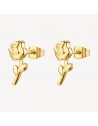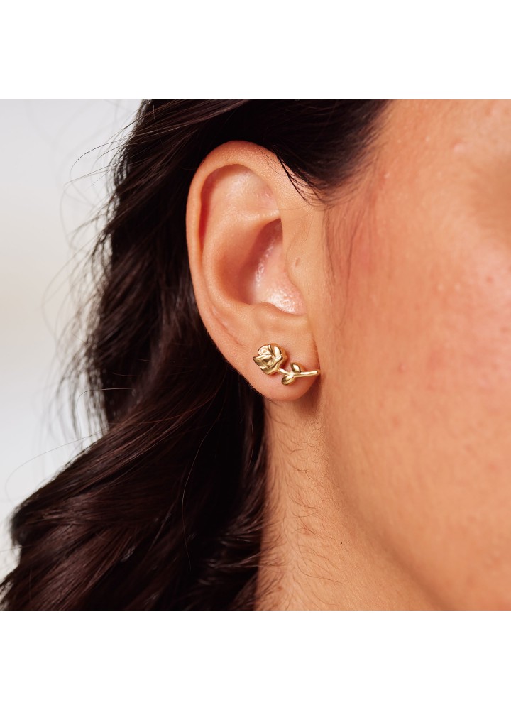 Orecchini a lobo in acciaio 316L e finitura pvd oro 14K a forma di rosa.