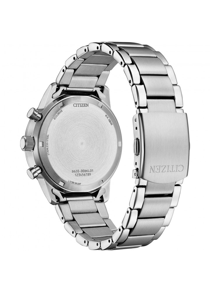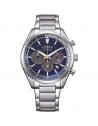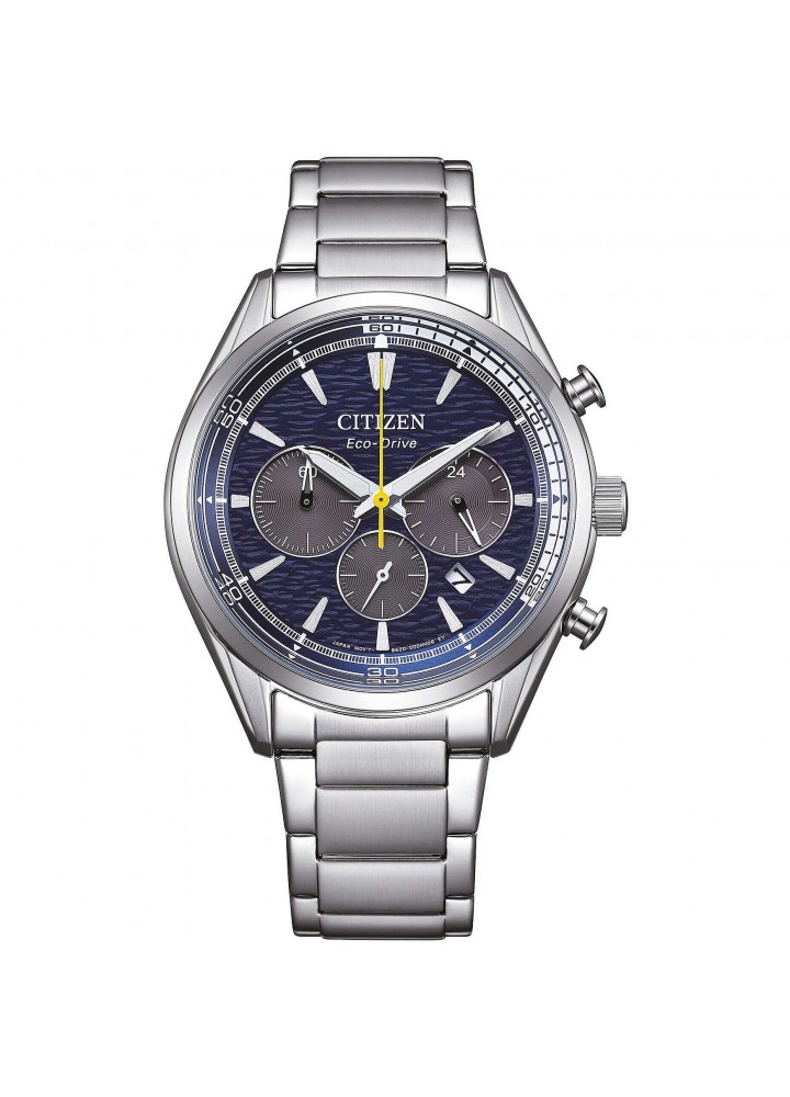 Orologio di Citizen della collezione OF Collection 2026. Orologio cronografo eco drive da uomo con cassa in acciaio con fondello serrato a vite e diametro di 39 mm; quadrante Blu con indici applicati e vetro minerale. Bracciale in acciaio con chiusura a pulsante. Resistenza all’acqua di 10 ATM e movimento eco drive calibro B620 con riserva di carica fino a 7 mesi