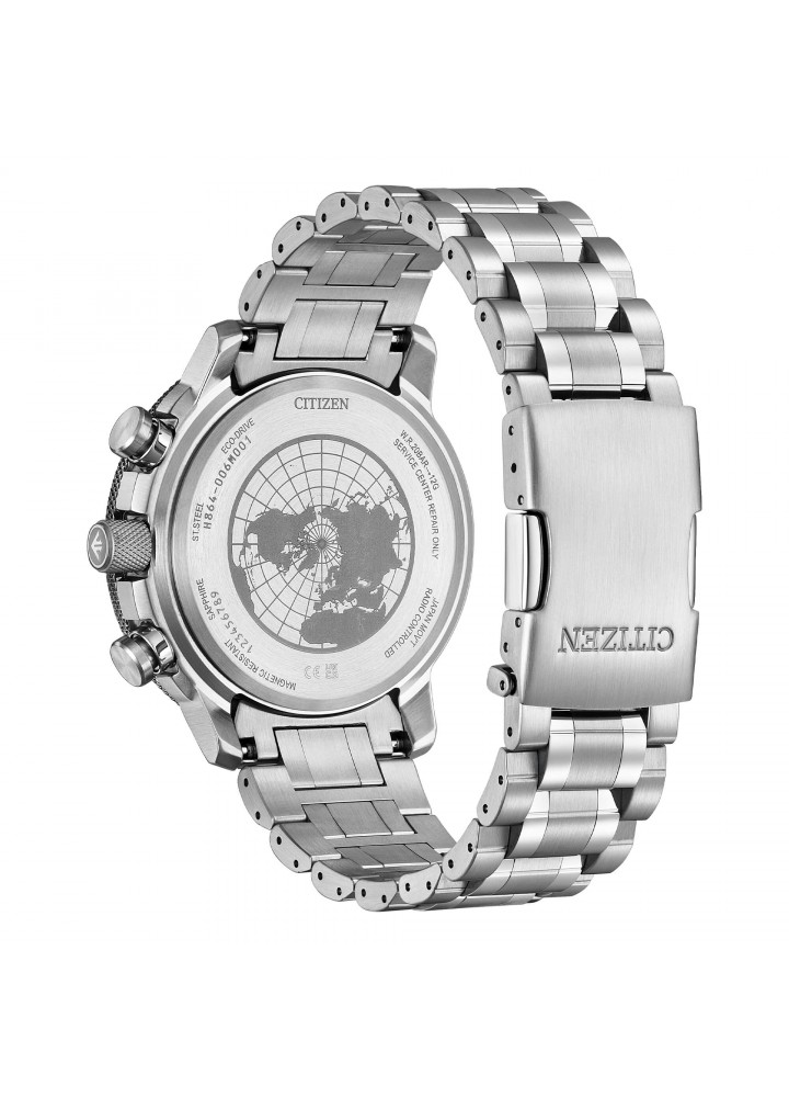 Il Citizen Radiocontrollato Ref: BY3006-53E è un orologio con tecnologia Eco Drive, alimentato a energia solare e dotato di una riserva di carica di 2,5 anni. Realizzato in acciaio con finitura grigia, ha un quadrante nero e un resistente vetro in zaffiro. Le funzioni includono il radiocontrollo per massima precisione e la modalità World Time. È inoltre dotato di regolo calcolatore. Impermeabile fino a 20 bar, ha una cassa robusta da 46 mm e uno spessore di 11,5 mm, ideale per chi cerca precisione e affidabilità.