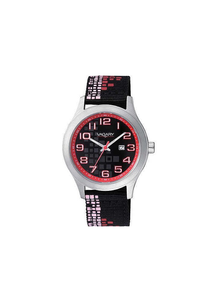 Orologio Vagary By Citizen da bambino. Movimento al quarzo. Cassa 36mm in acciaio e cinturino in tessuto tecnico. Resistenza all'acqua di 5atm.. Referenza: IU0-411-56