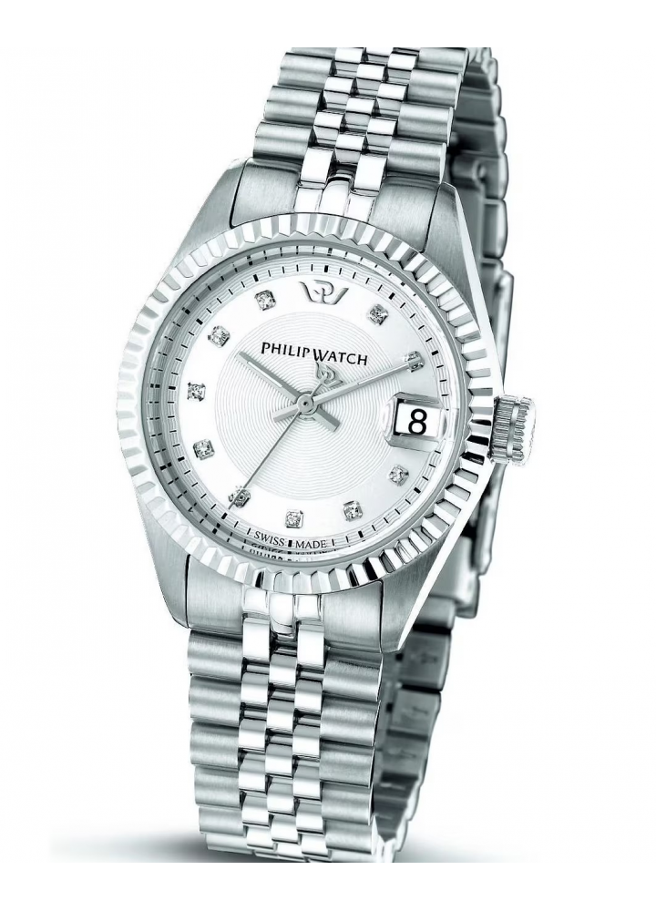 Philips Watch, Orologio Donna, Collezione: Caribe, Movimento: Quarzo Swiss Made Solo Tempo 3 Sfere, Cassa Tonda, Diametro O Misura Cassa: 31 Mm, Cinturino In Acciaio, Colore Cinturino Acciaio, Resistenza All'Acqua: 10Atm Con Fondo E Corona A Vite.