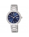 Movimento al quarzo. Cassa e bracciale in acciaio. Lunetta con 32 cristalli. Diametro cassa 32 mm. Vetro minerale. WR 5 bar.