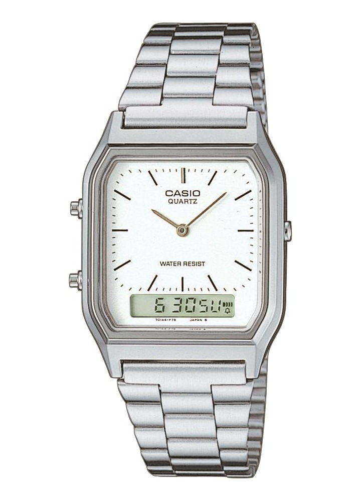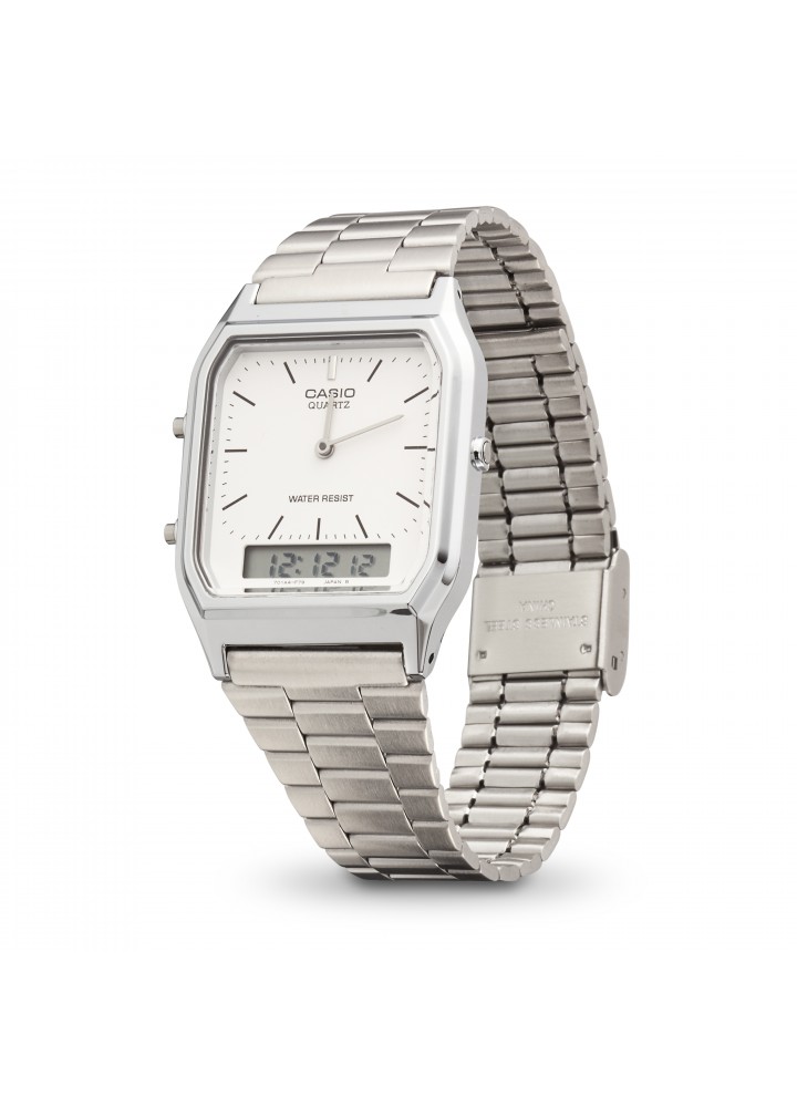 Orologio Unisex di Casio con cassa in acciaio , quadrante con vetro minerale di colore Bianco e cinturino acciaio.