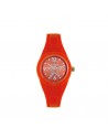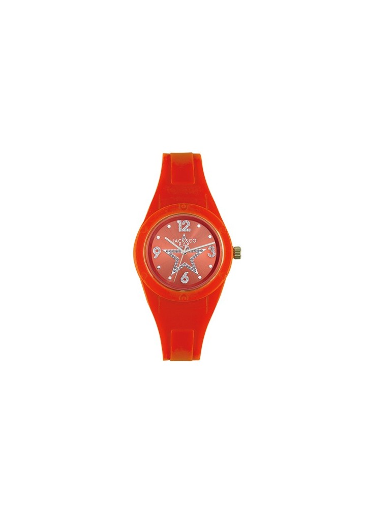 Orologio Analogico Al Quarzo, Cassa in plastica 34 mm, Quadrante Verde, Stella e Indici con Cristalli, Cinturino in Silicone Arancione. 5 ATM.