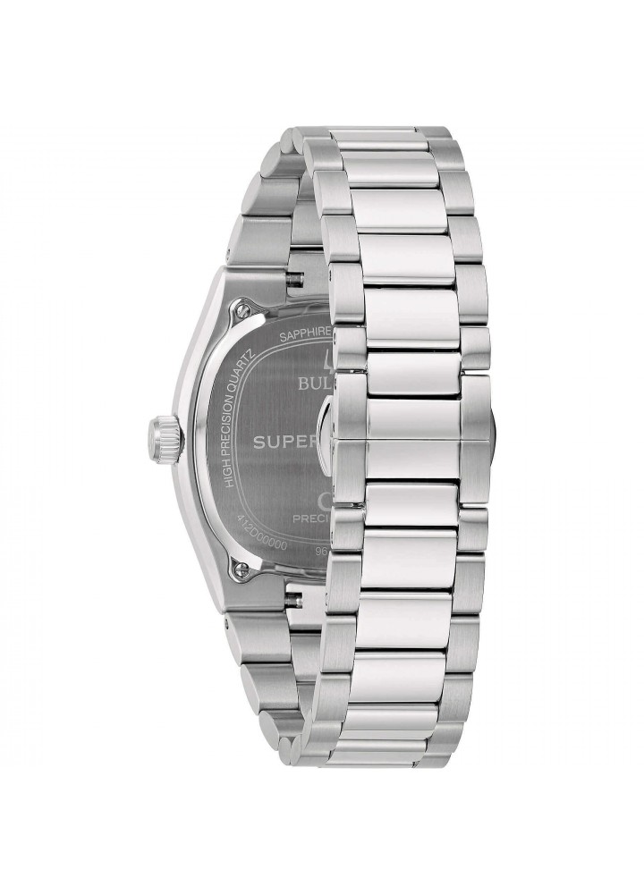 Orologio solo tempo da uomo di Bulova della collezione Super Seville. Il materiale della cassa è acciaio di misura 38 X 42 mm. Il materiale del cinturino è acciaio. La chiusura del cinturino è deployante. Gli indici sono a tacche. Il movimento è higt precisionist quartz 262 khz. La resistenza all'acqua è di 30 metri