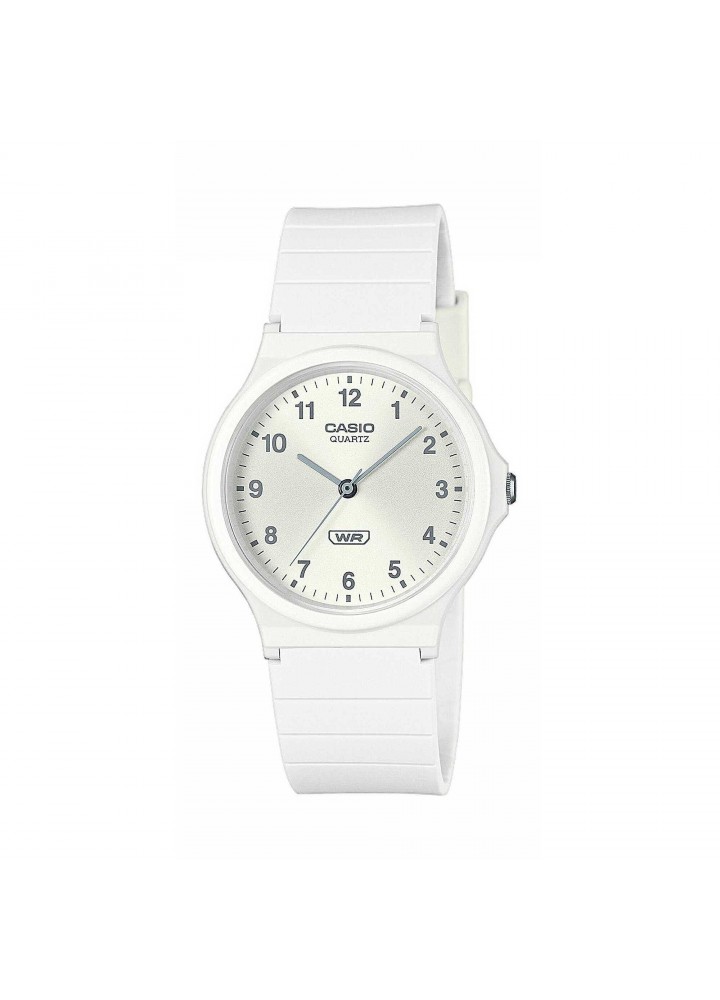 Orologio analogico unisex del brand Casio della collezione Timeless Collection. Orologio in resina, di colore bianco e forma rotonda. Diametro cassa: 34,9 mm. Cinturino in resina, di colore bianco, con chiusura ad ardiglione. Vetro acrilico. Funzioni: 2 anni - 1 batteria, resistenza all'acqua: 5 bar
