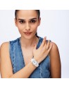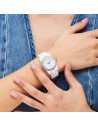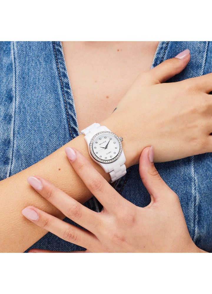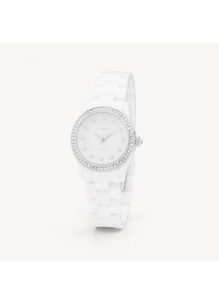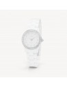 Orologio solo tempo in acciaio 304 con quadrante copper bianco e cristalli, con cinturino in policarbonato bianco.