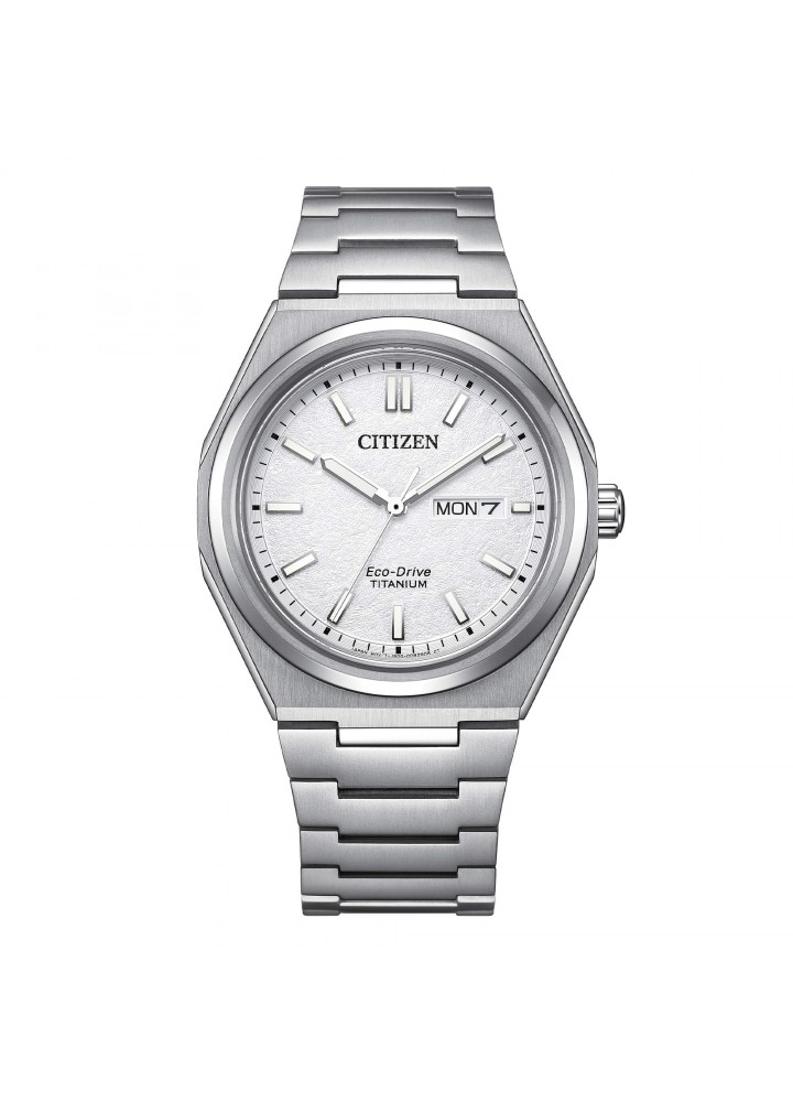 Citizen introduce nella linea Super Titanium questo splendido orologio AW0130-85A caratterizzato da una deliziosa cassa dalla forma ottagonale progettata in titanio per una migliore resistenza nel tempo. Di colore grigio, è evidenziato da una finitura spazzolata sulla superficie e lucida sui bordi e sulla lunetta. Adatto ai polsi da uomo, misura 39,50 mm di diametro ed ha uno spessore di 9,80 mm. Gli elementi centrali puntati dalla corona dentellata posta a ore 3 sono ricoperti da un vetro zaffiro piatto il cui ruolo è quello di proteggerli da urti e graffi che possono danneggiarli quotidianamente. Infine, il fondello avvitato con parte centrale spazzolata e bordo lucido garantisce che questo orologio da 91 g sia resistente all'acqua fino a 10 ATM.