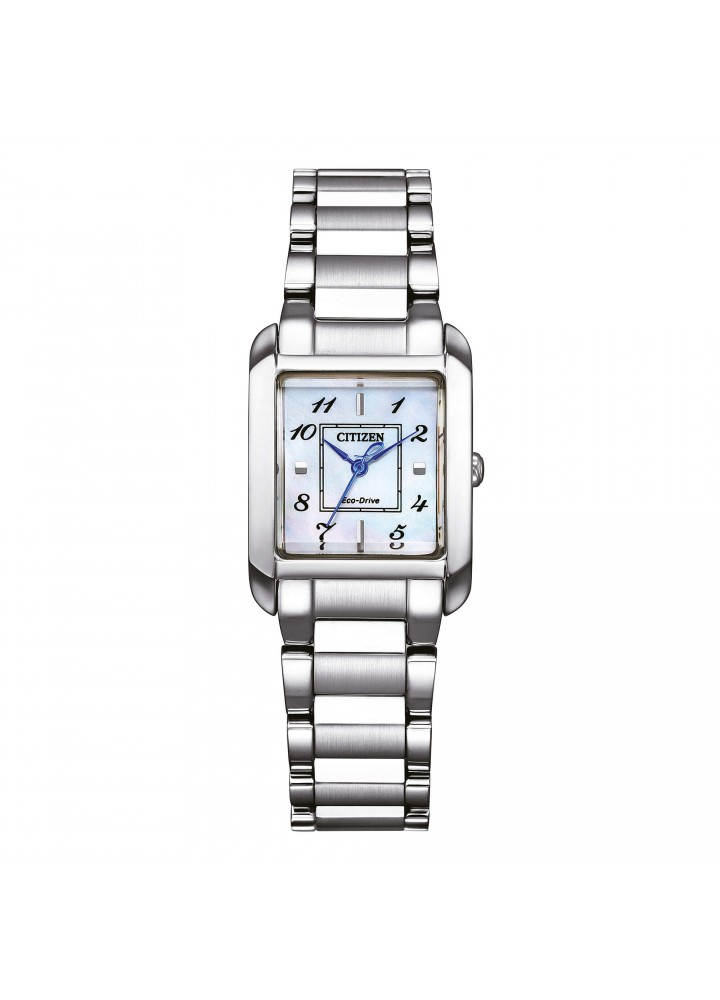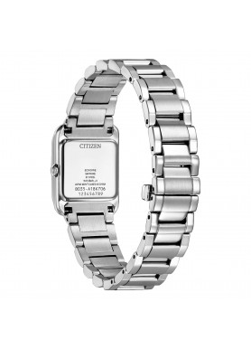 Movimento Eco-Drive a carica luce con riserva di carica di 180 giorni. Caratteristiche Cassa in acciaio, bracciale in acciaio. Vetro zaffiro. WR 5 bar. Dimensioni Diametro cassa 28 x 21 mm