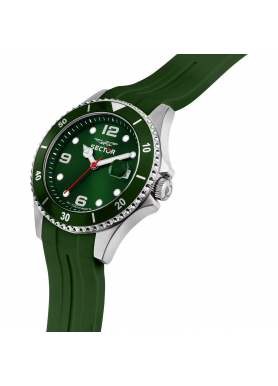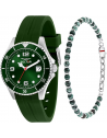 Orologio serie 230 di Sector, Cassa in acciaio, cinturino in morbido silicone colorato, quadrante Verde con ghiera , in abbinamento bracciale in pietra naturale dalle sfumature verdi.
