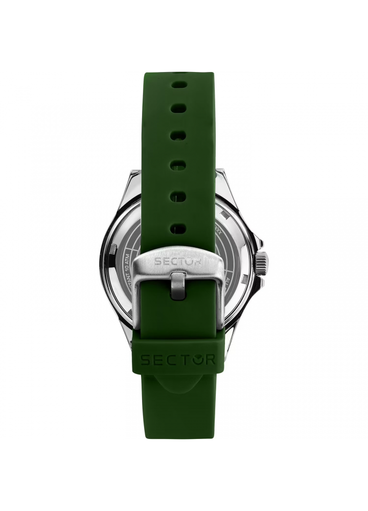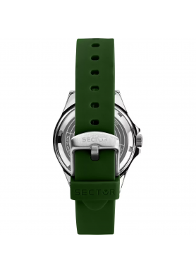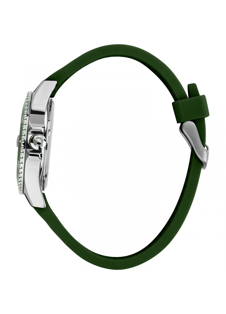 Materiale e finitura cassa: Acciaio, Misura cassa: 39.00, Spessore cassa: 11.40, Colore cassa: Silver, Vetro: Vetro minerale, Materiale cinturino: Plastica, Colore cinturino: Verde, Chiusura: Fibbia ardiglione, Movimento: Quarzo, Water resistant: 10 atm,