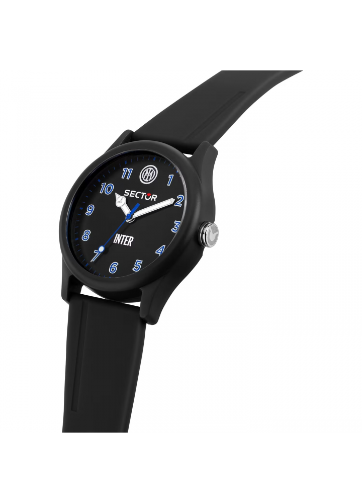 Orologio Sector dell'Inter, cassa in resina e cinturino in silicone colore Nero con quadrante Nero ed indici Blu e stemma della squadra .