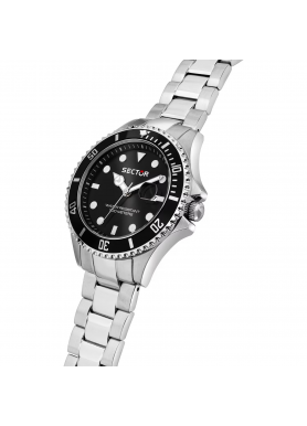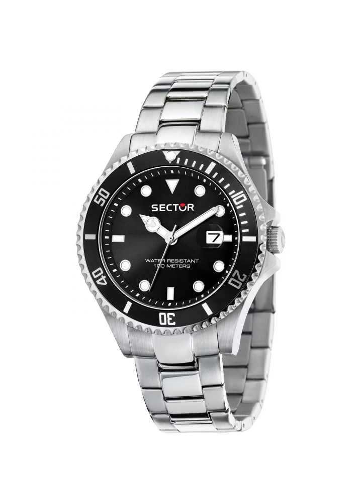 Orologio Uomo Sector solo tempo, cassa e cinturino in acciaio, quadrante nero e ghiera nera.