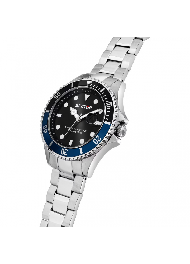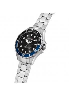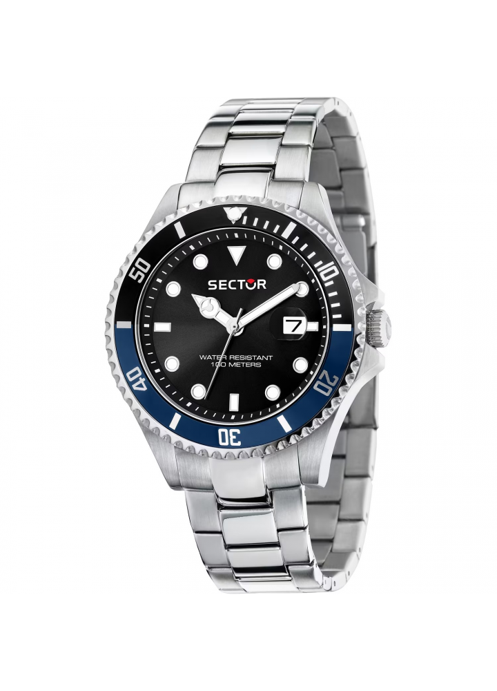 Orologio Uomo Sector solo tempo, cassa e cinturino in acciaio, quadrante nero e ghiera bicolore nero/blu