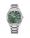 Orologio di Citizen della collezione OF Collection 2026. Orologio eco drive da uomo con cassa in acciaio e diametro di 40 mm; quadrante verde con indici applicati e vetro minerale. Bracciale in acciaio con chiusura a pulsante. Resistenza all’acqua di 10 ATM e movimento eco drive con riserva di carica fino a 8 mesi.