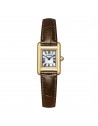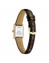 Calibro: G620 – Solare Eco-Drive Dimensioni cassa: 17,4 × 24,5 mm Spessore: 5,4 mm Materiale cassa: Acciaio inossidabile PVD oro giallo Quadrante: Bianco con indici romani Vetro: Minerale Fondello: A pressione Corona: A pressione con cabochon Cinturino: Pelle marrone